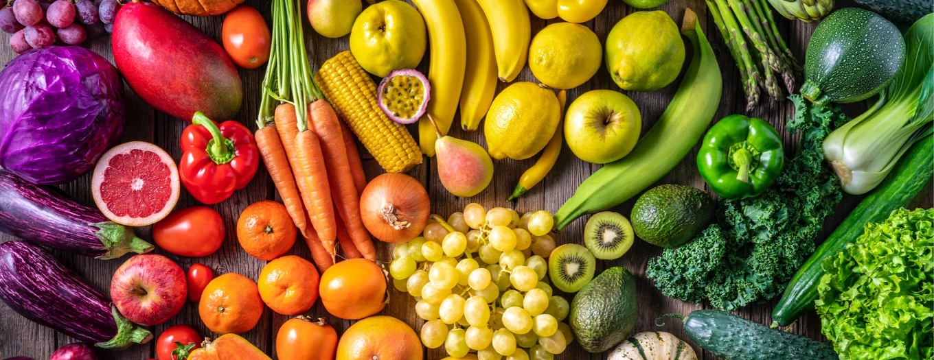 As frutas e legumes são os alimentos mais ricos em fibras, vitaminas e minerais da nossa roda da alimentação mediterrânica.